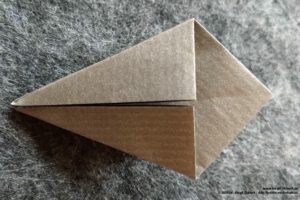 1. Zunächst wird ein zusammengeschobenes Dreieck gefaltet, wie das geht, habe ich hier erklärt.