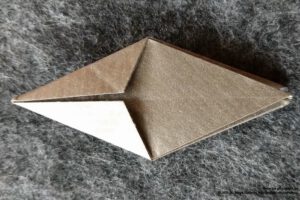 2. Auf Vorder- und Rückseite wird nun ein „Drachen“ gefaltet, wie das geht, findet ihr hier.