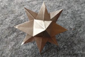 Den Stern fand ich deshalb besonders interessant, weil ich ihn schon aus dem Workshop zum Falten am Bauhaus kannte und selbst in meinen Workshop mit Teilnehmer:innen falte. Bisher war ich aber nicht auf die Idee gekommen, das Modell als Stern zu nutzen.