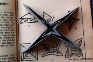 Als ich am Wochenende die Anleitung für einen Faltstern aus meiner Kindheit suchte – in einem meiner gesammelten Bastelbücher, nicht im Internet 🙂 – stieß ich auf eine Seite voller Sterne in dem fast 80 Jahre alten Buch „Kinder basteln und spielen“ von Susanne Ströse. Die Deutsche Nationalbliothek vermutet, dass es von 1948 ist, auf jeden Fall muss es in der Nachkriegszeit erschienen sein, denn es enthält einen Vermerk, dass die Veröffentlichung mit „Control License No. US-E-138“ erschienen ist. Einige der Sterne habe ich gefaltet und die Anleitungen für euch konkretisiert 🙂