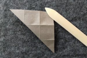 1. Zunächst wird ein zusammengeschobenes Dreieck gefaltet, wie das geht, habe ich hier erklärt.