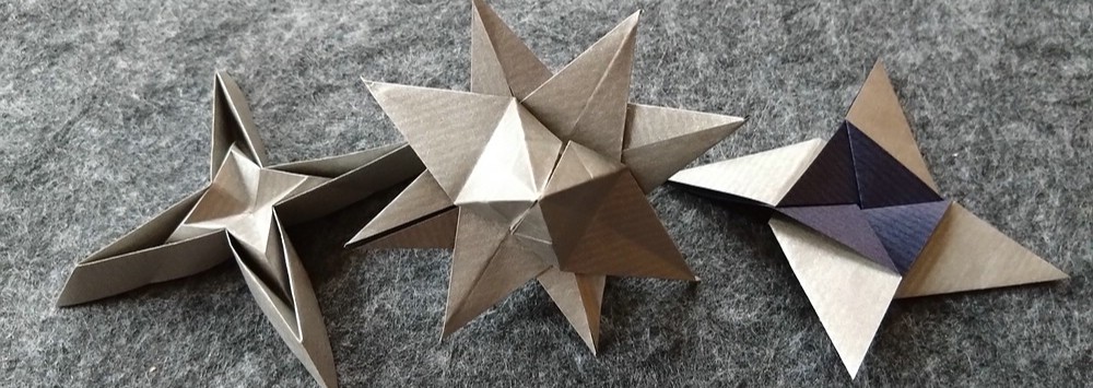Den Stern fand ich deshalb besonders interessant, weil ich ihn schon aus dem Workshop zum Falten am Bauhaus kannte und selbst in meinen Workshop mit Teilnehmer:innen falte. Bisher war ich aber nicht auf die Idee gekommen, das Modell als Stern zu nutzen.