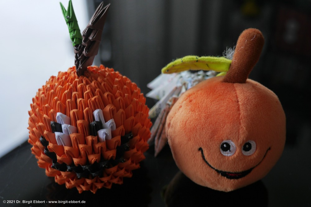 Die Herausforderung für diese Challenge fiel mir beim Aufräumen vor die Füße – die Plüschorange Sina aus Gotha, das Maskottchen der Orangerie. Nach einer anstrengenden Challenge, die ich erst mit Abstand posten werde :-), fand ich eine Kugel ganz angenehm.