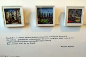 Die Bilder des Dortmunder Künstlers Michael Wienand, der mehrere Jahrzehnte als Bühnen- und Museumsbildner arbeitete, greifen den Alltag der Menschen im Revier auf, von der Trinkhalle, die immer wieder mit unterschiedlichen Schwerpunkten thematisiert wird, über die „Fenstergucker“ bis zum Fußballstadion und der Kleingartenanlage werden Besonderheiten aus dem Ruhrgebiet dargestellt. Daneben finden sich Bilder von Räumen und Situationen, die auch außerhalb des Reviers bekannt sind wie die Zahnarztpraxis, die Spülküche, die gelbe Telefonzelle, der rote Kaufgummiautomat bekannt sind und Erinnerungen hervorrufen.
